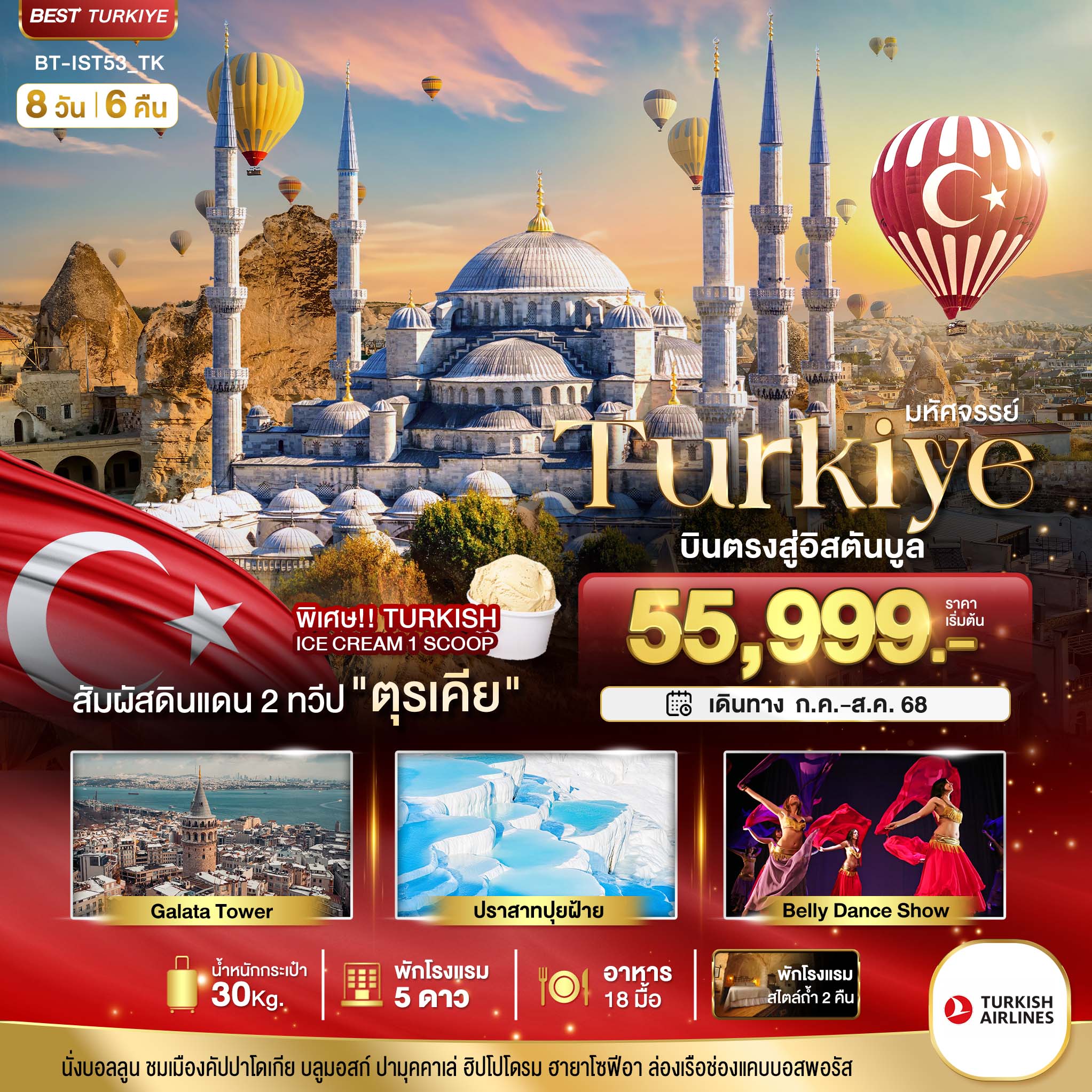 ทัวร์ตุรเคีย NEW YEAR 2026 อิสตันบูล อังการา คัปปาโดเกีย ปามุคคาเล่ ซานัคคาเล BELLY DANCE 8วัน 6คืน (TK)